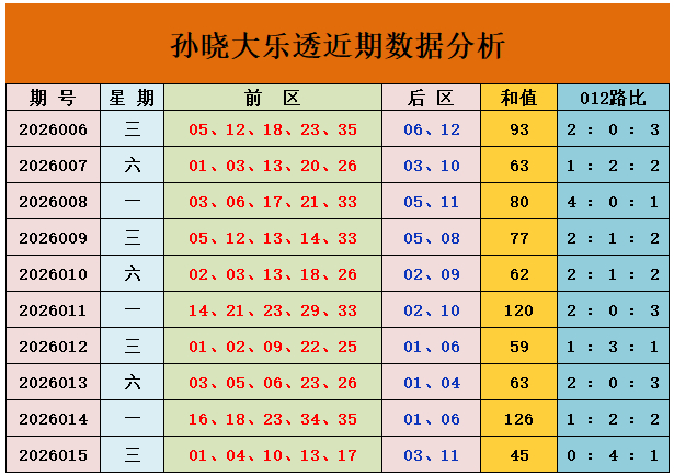 凤凰彩票 016期孙晓大乐透预测奖号:后区两码推荐